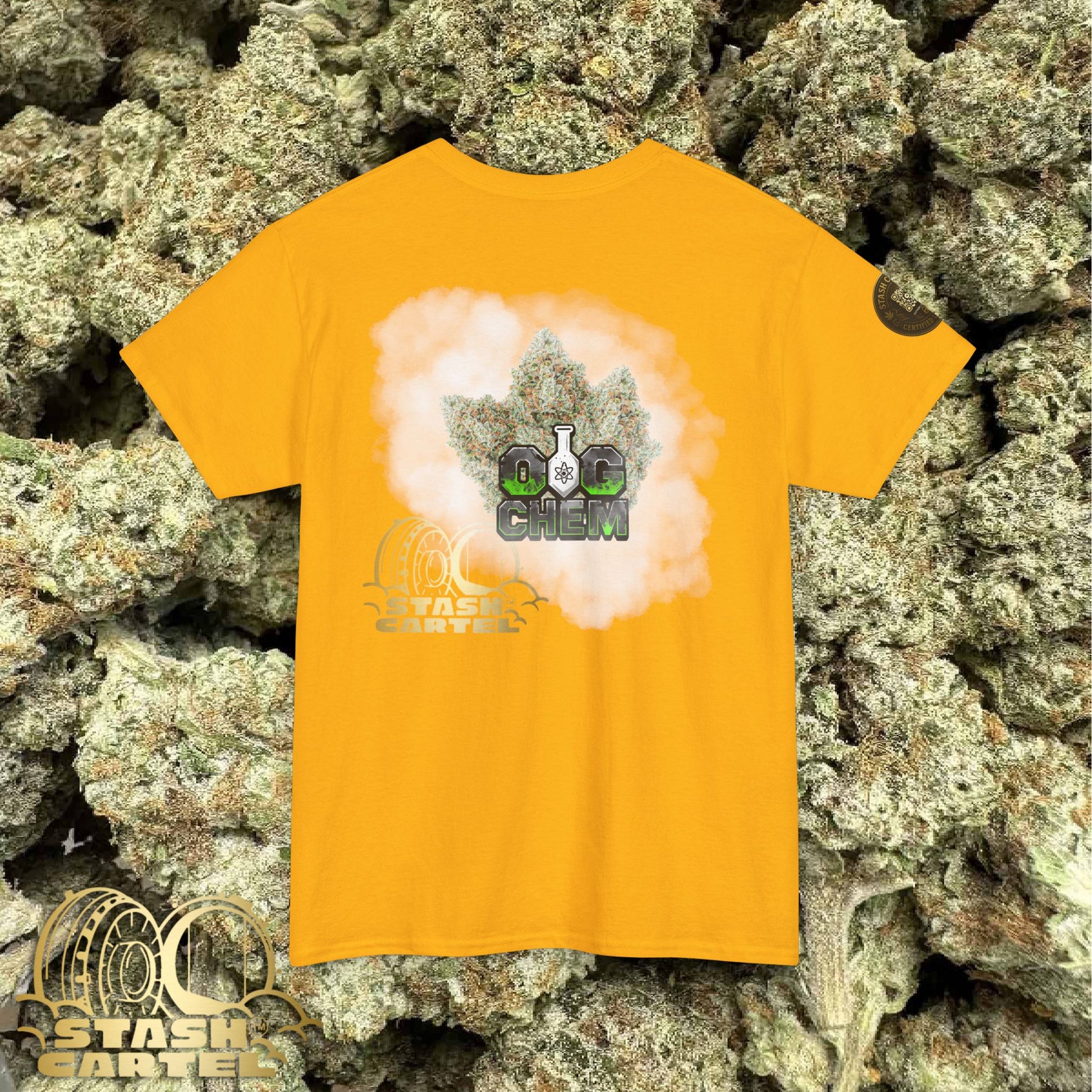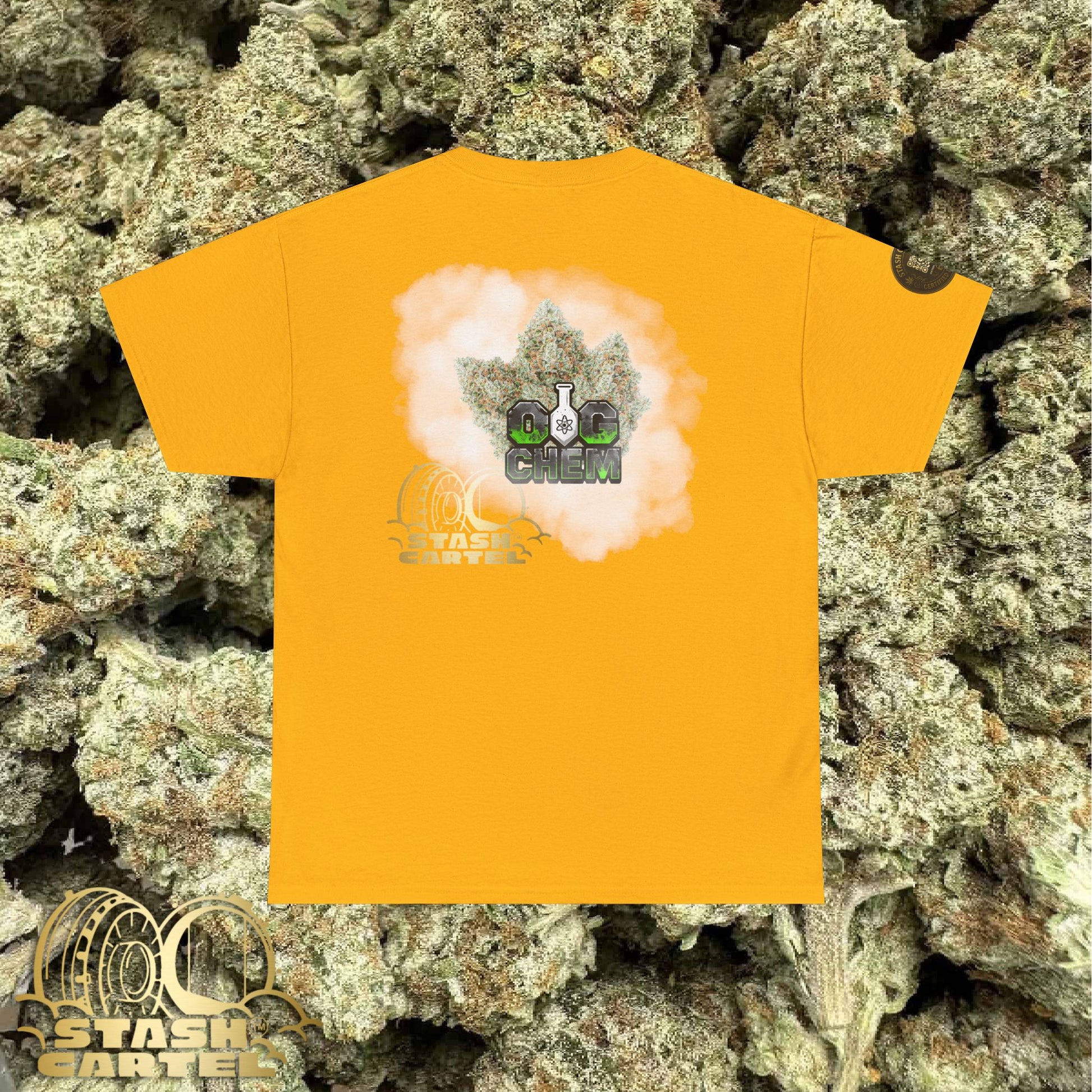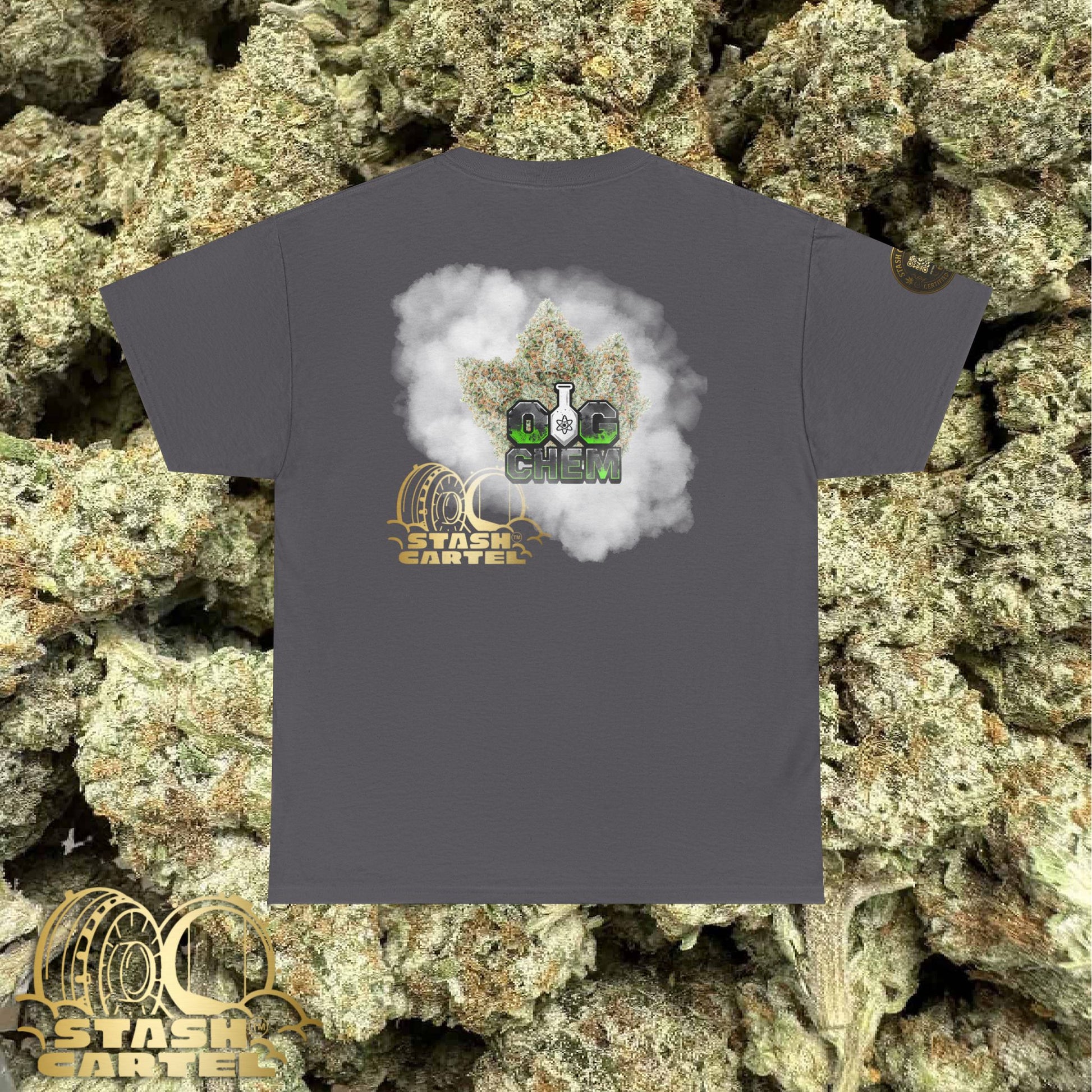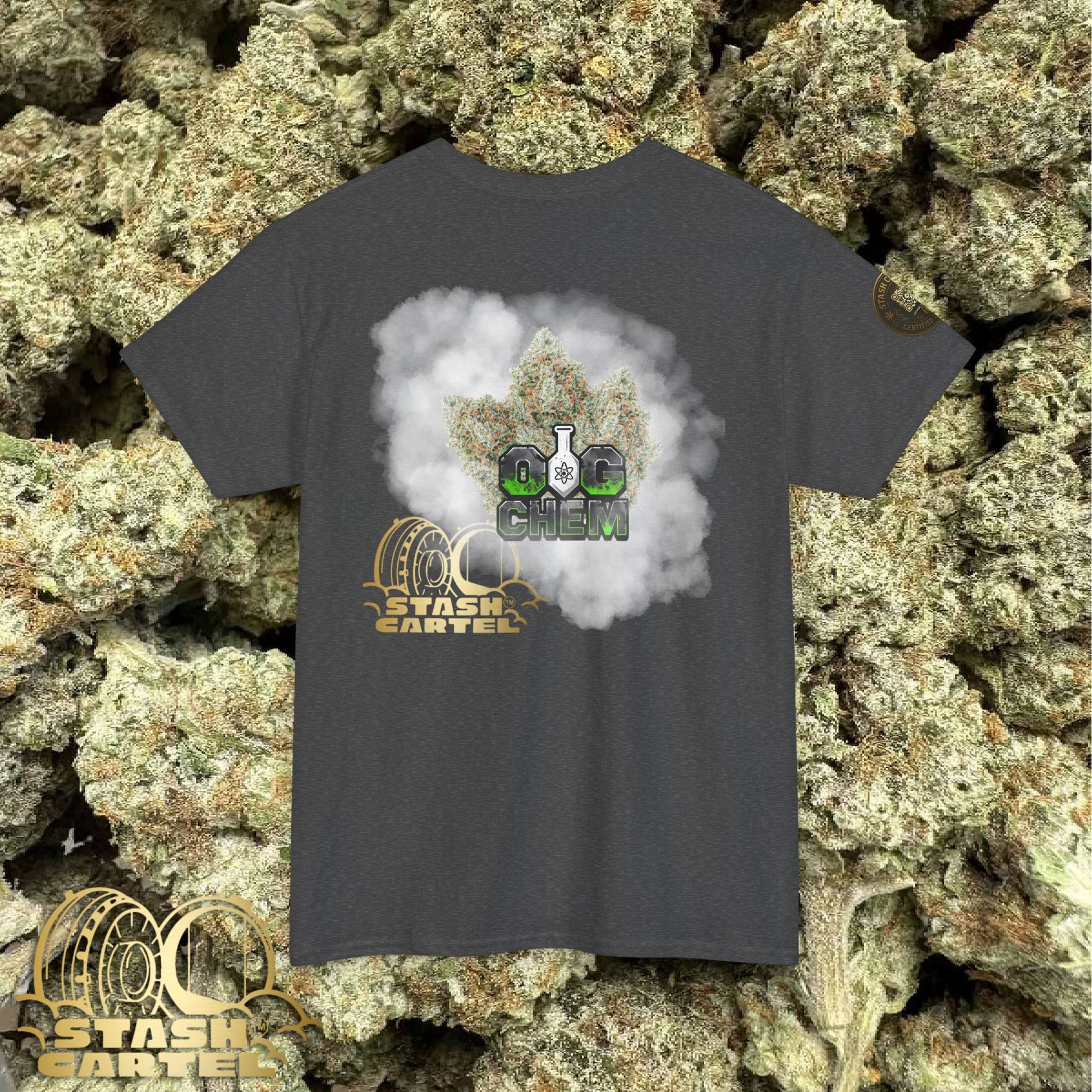The OG Chem Tee is for the true terp historians—those who know the deep lineage of ChemDawg and OG Kush. This strain is jet fuel in plant form, delivering an unmistakable chemical diesel aroma that changed the game. Powerful, cerebral, funky—just like your wardrobe should be.